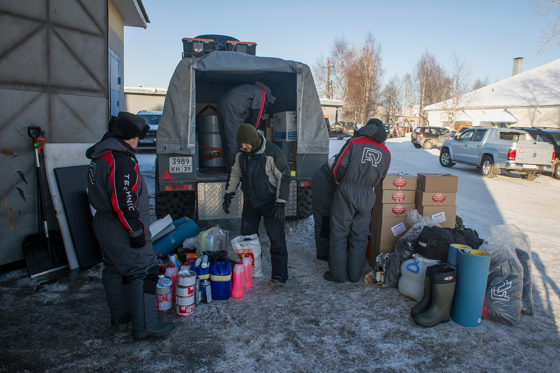 Наша экспедиция ненадолго задержалась под Архангельском. Мы дополнительно закупаем продукты, свежие овощи и подарки. Красный ШАМАН возвращается из Архангельска, куда он ушел на заправку, в том числе и двух 200-литровых бочек бензином - для квадрика Евгения Павлова. Наконец "красный" возвращается и мы спешно грузимся.